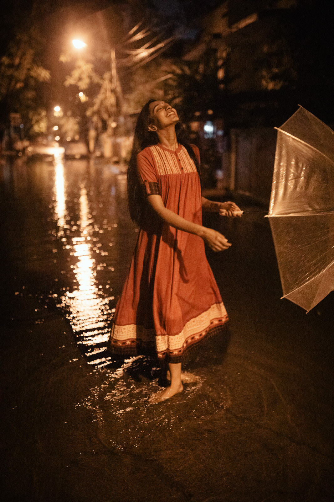 I’ve been working late into the night like all other days. It’s 3:20 am when I first stifle a yawn and notice the time. I let the export run on the computer, turn the lights off, walking groggily into the bedroom. I creep beneath my end of the duvet, careful not to wake her up. Almost instinctively, she nudges closer, the small of her back finding the small patch of skin peeping through the gap between my t-shirt and dirty shorts as I lay curled up. She nestles further in, fitting her cold body in the crevices she can find in mine, our body temperatures flowing to and fro on the scale for a brief moment before they find middle ground; a nice, warm fire, crackling, et al. I smile, glancing up at the blurry reflection of her face on the window pane near me. She always leaves the bedroom lit so it has a warm glow about it, so fuzzy and quiet, it is almost impossible to not drift asleep minutes after stepping into the room. The fan keeps her stray strand of hair fluttering gently, and I fall asleep, the light, sound of fan, her breathing against the nape of my neck, and a wholeness in my heart. She’s up in my dream, standing by our balcony, letting the rain drench her slowly, swaying to music only she seems to hear. She senses my presence behind her, turns around wordlessly, eyes smiling at me knowingly. Only now, what separates her from me is no longer the window, but the desktop, her face so close, I can see it pressed against the screen, now too close, too blurry, now two steps away, my lens whirring around to find a plane of focus on her, now only her bindi, now the weird embroidery on her kurta, now a couple of raindrops trailing down her nose as she laughs a chime, looking down, taking away the little grip I have left on deciphering how I landed up here. It might not make sense to you, I’m still inside my dream, but until she twists and turns around in S’s and inverted S’s, until her finger tips trace the skeletal structure around my waist, bringing along a whiff of her, until then, it is me, her, my desktop screen although yes, that does not quite make sense either, and that little bit of rain on our balcony. ** You might enjoy looking at the pictures while listening to this number. Hit play. :)